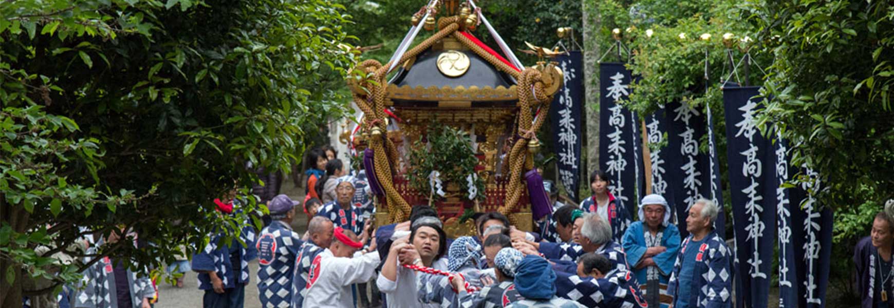 7月 夏季例大祭(御船祭) 昔々、大磯浦の漁夫「蛸之丞」 ( たこのじょう ) が海の中に光るタコを発見し、そのタコは光輝く千手観音に姿を変え、高麗寺に奉納されました。その由来に基づき現在まで祭りが行われています。 宮立ちした御神輿が町内を練り歩き、照ヶ崎海岸まで運ばれそこで祭事を行います。偶数年毎に大磯の十三の町がそれぞれの山車(マツリブネ)で町内を曳いて回る、とても賑やかなお祭りです。